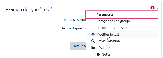- Vous pouvez ajuster la valeur de cette question en allant dans “Modifier le test” :