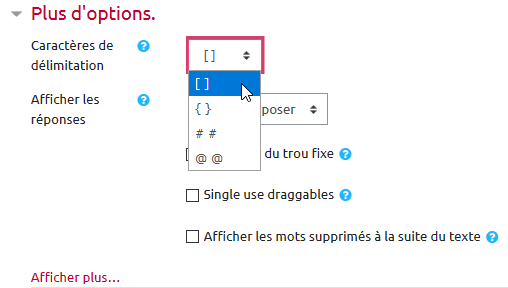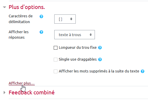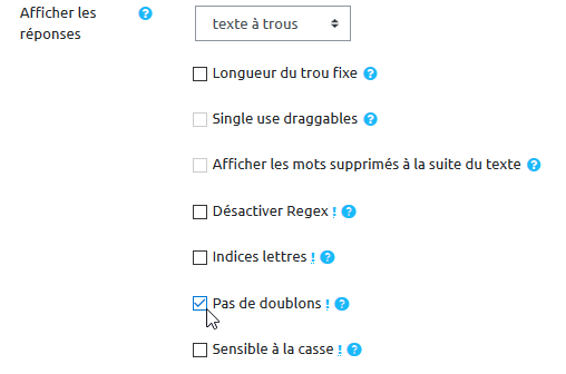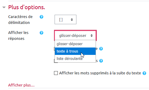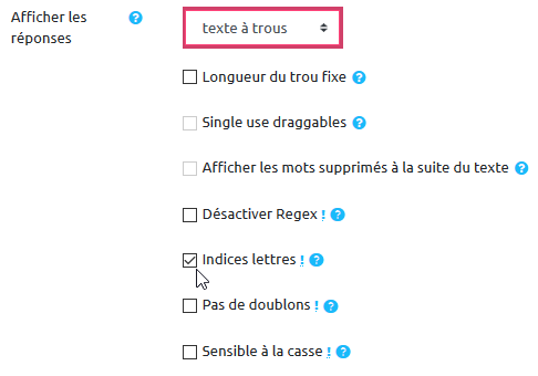 Étape 5 : choisir l'affichage des réponses par texte à trous