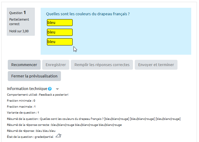 Lorsque le comportement des questions du test est réglé sur “Interactif avec essai multiples” (idéal en évaluation formative),