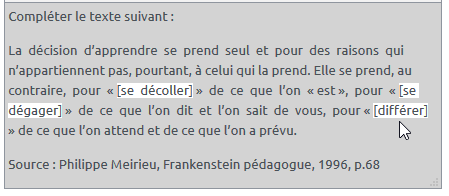 - texte à trous avec des étiquettes à glisser-déposer → "Glisser-déposer sur texte"