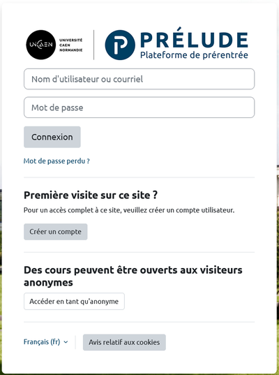 1 - Saisissez dans votre navigateur l'adresse suivante : https://prelude.unicaen.fr/