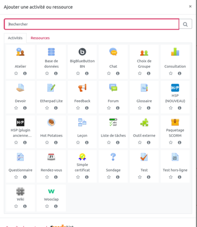 - Tout d'abord cliquer sur ajouter une activité ou ressource